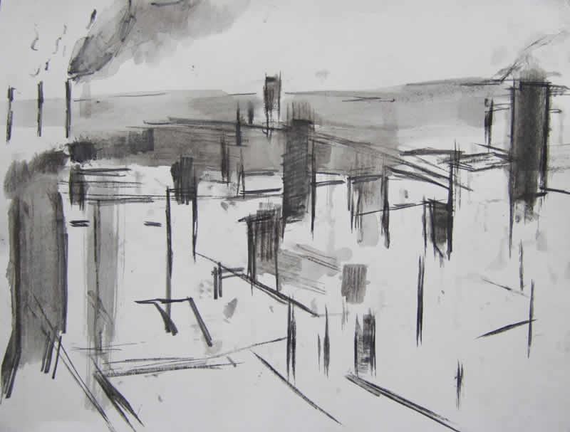 New York Chimneys, 2007, Ink on Paper, 30cm x 40cm