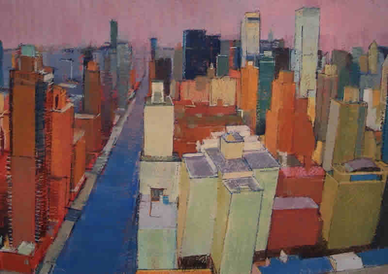 New York from the 265 Building, 2007, Acyrlic on Paper, 40cm x 50cm