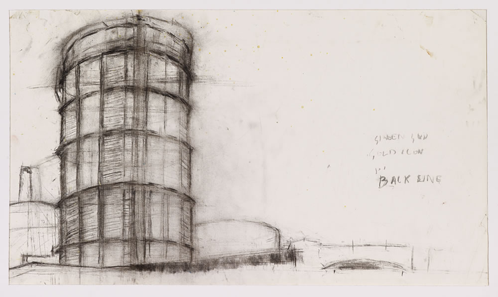 Battersea Gasholder, 1992 Charcoal on Paper 60cm x 80cm