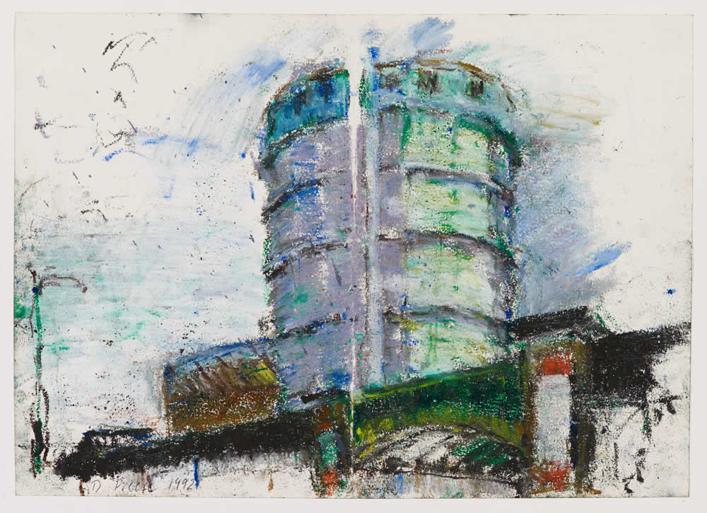 Battersea Gasholder in oil pastel 1992 40cm x 60cm