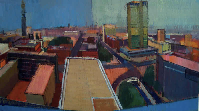 Two Towers 2006-08 Acrylic on Canvas 34cm x 60cm
