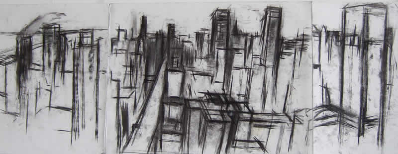 New York Panorama, 2007, Charcoal on Paper, 30cm x 80cm